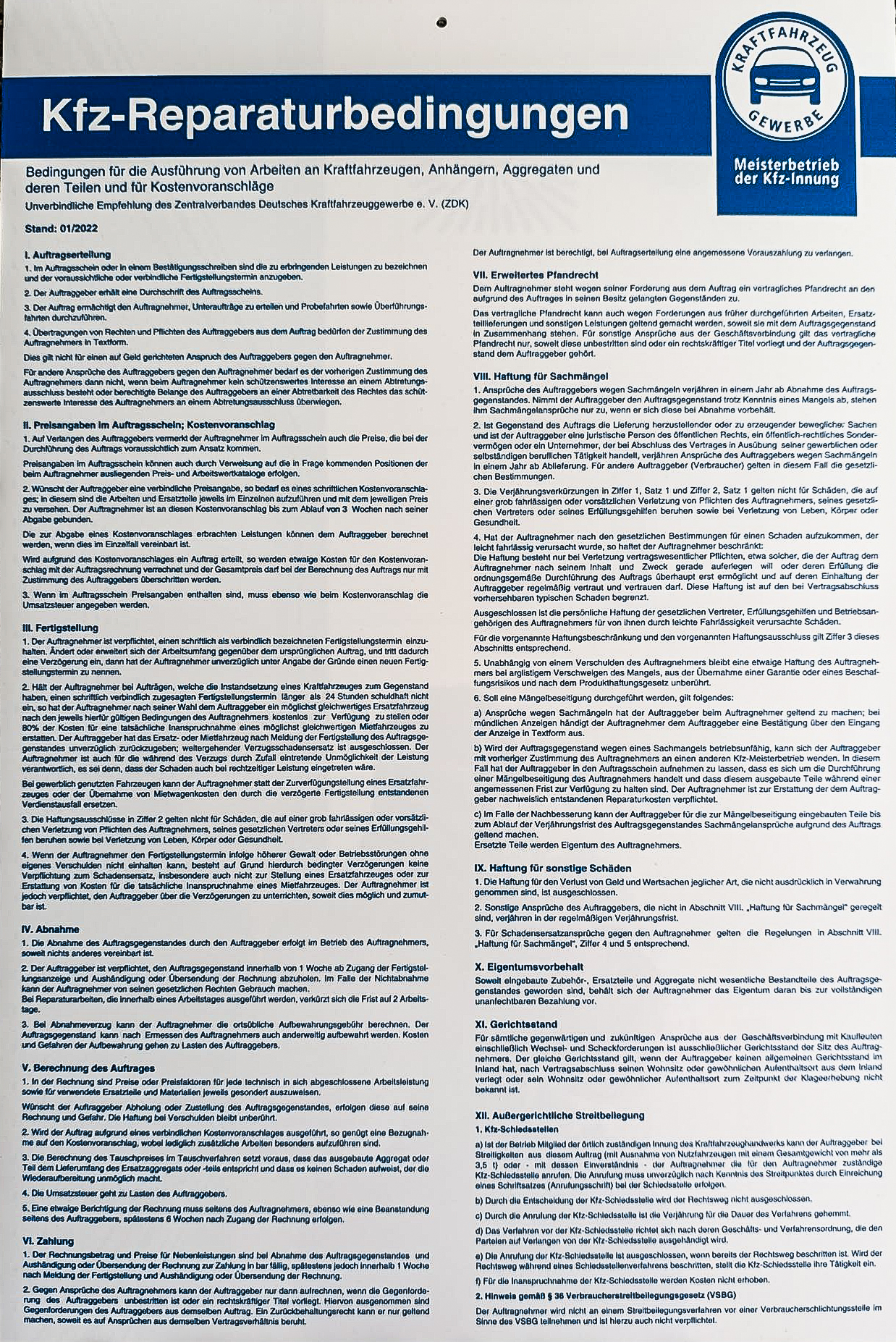 (Kfz-Reparaturbedingungen – unverbindliche Empfehlung des Zentralverbands Deutsches Kraftfahrzeuggewerbe e.V. (ZDK))
